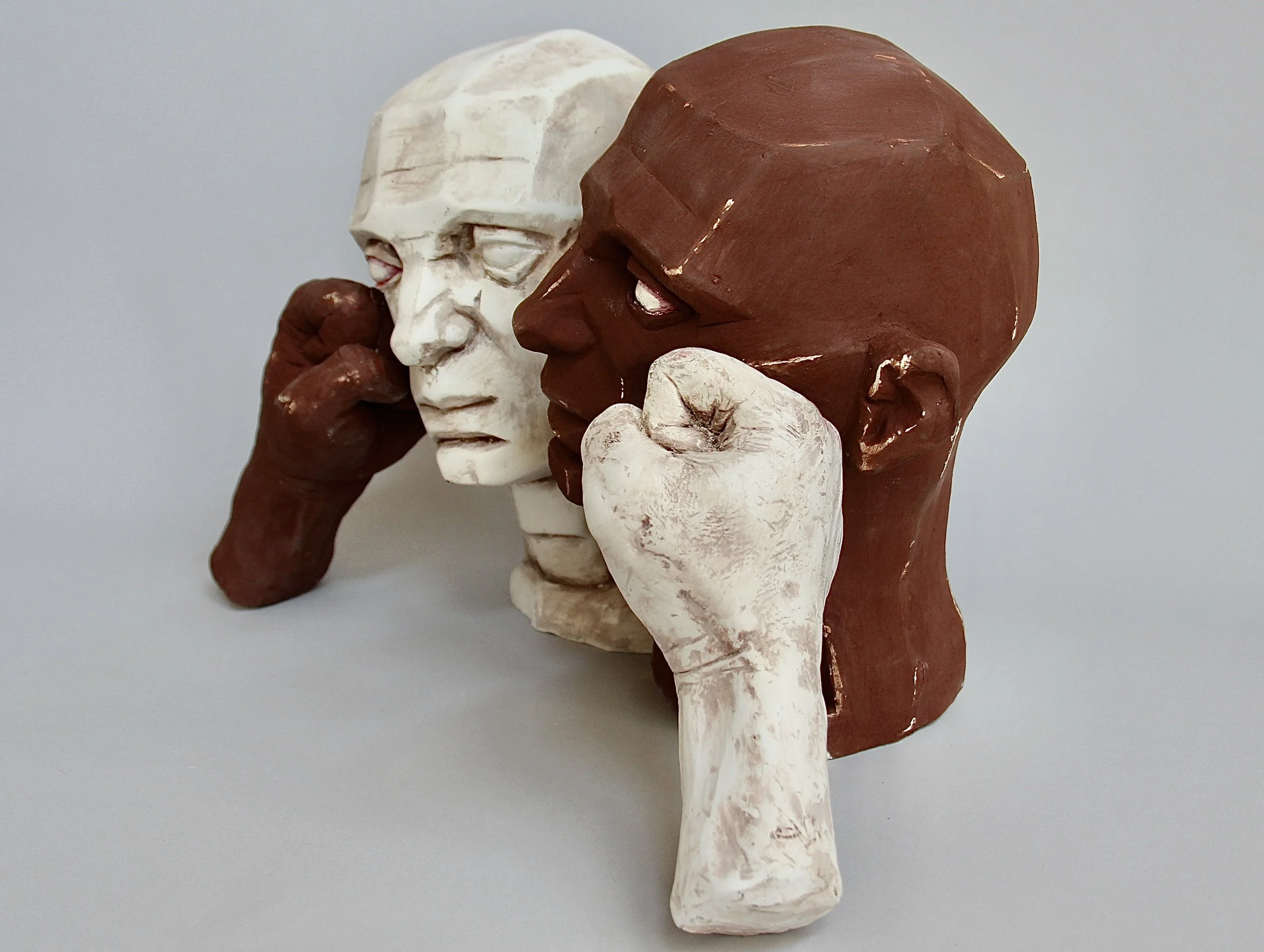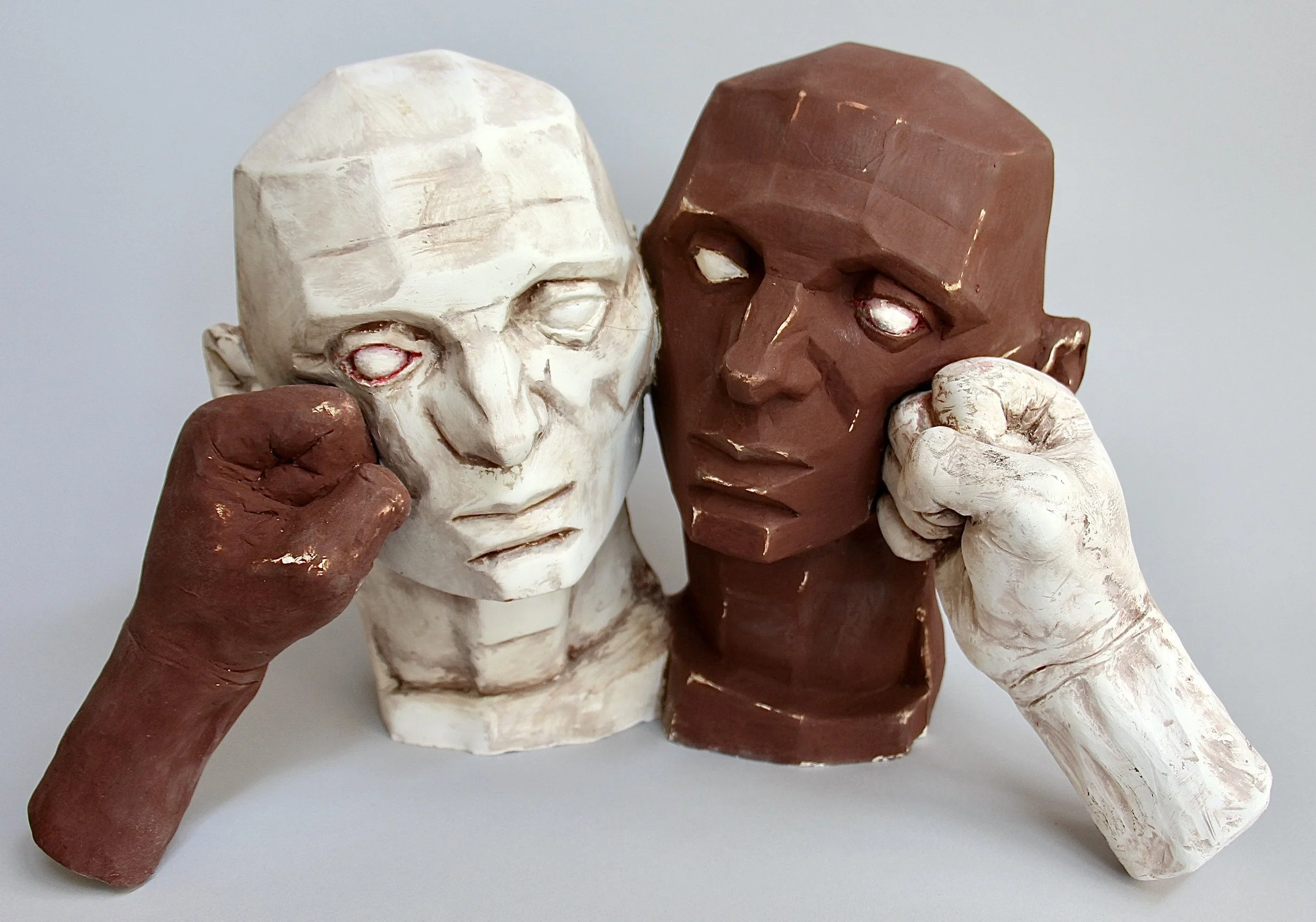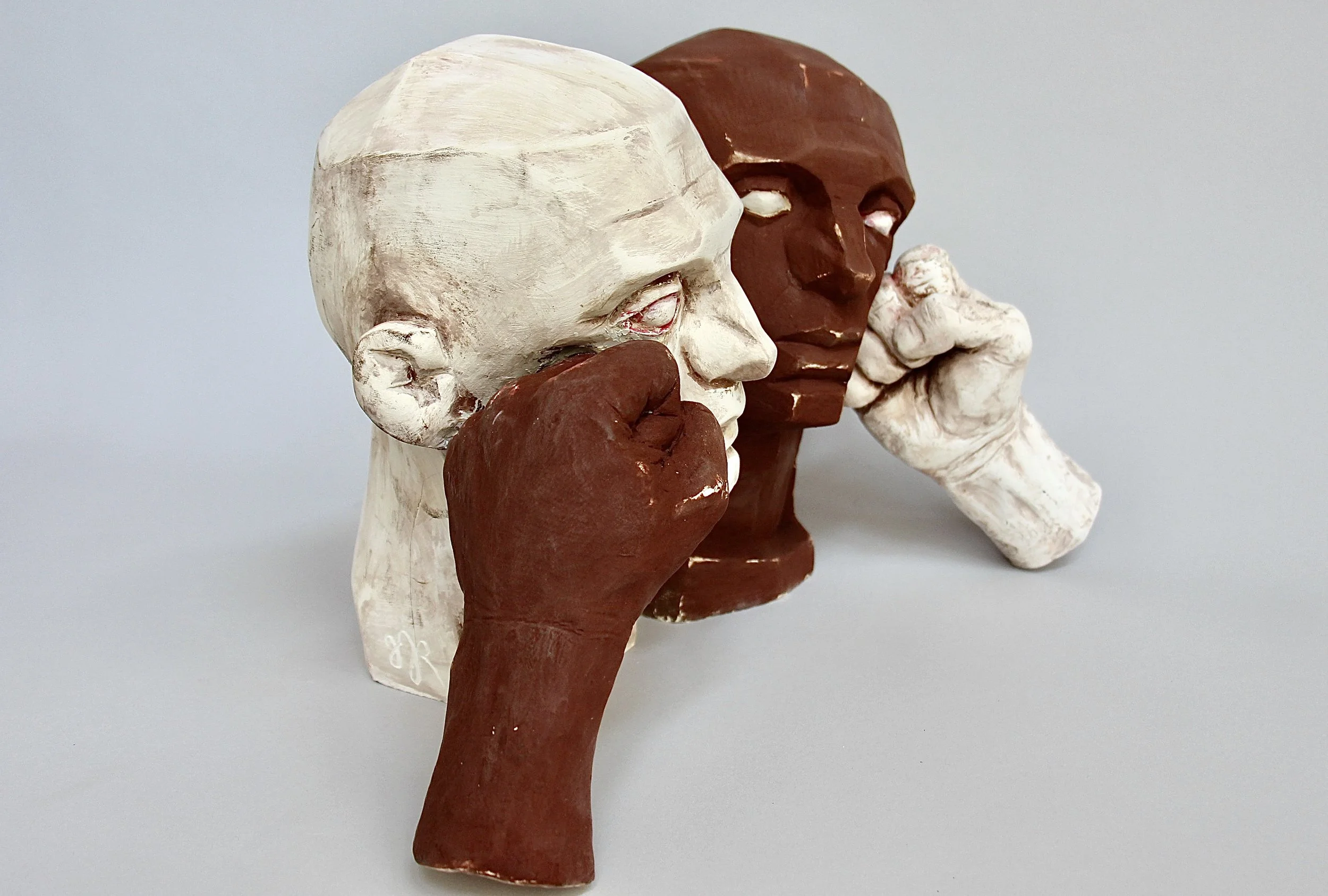 Effects of Racism: Nobody Wins • Clay • 11 x 17 x 9 inches. Influence of George Floyd murder, police brutality, and addressing the 1964 Civil Rights Act.